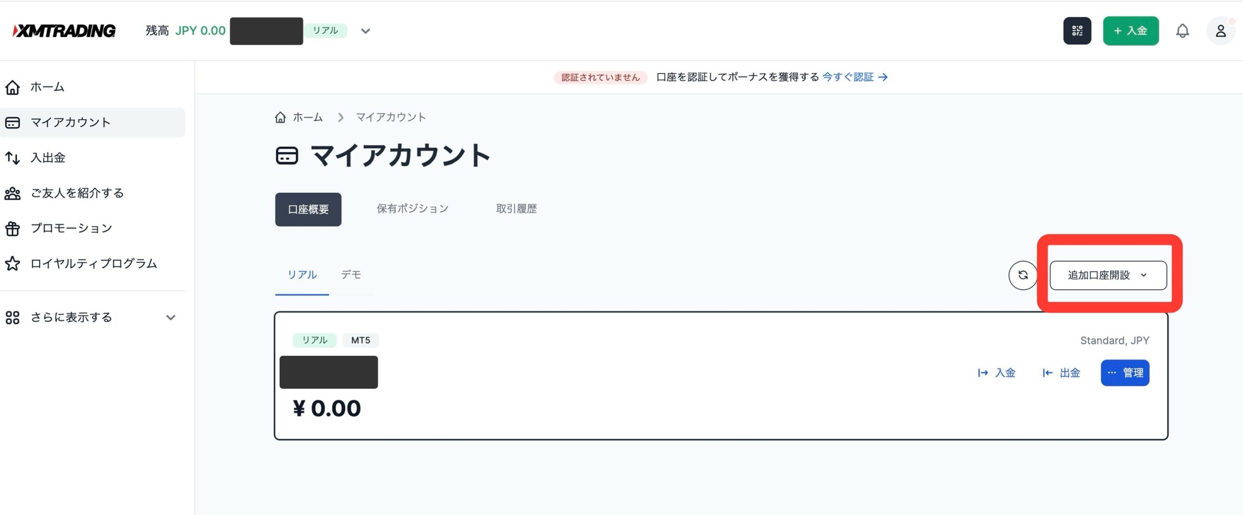 追加口座開設にすすみます。