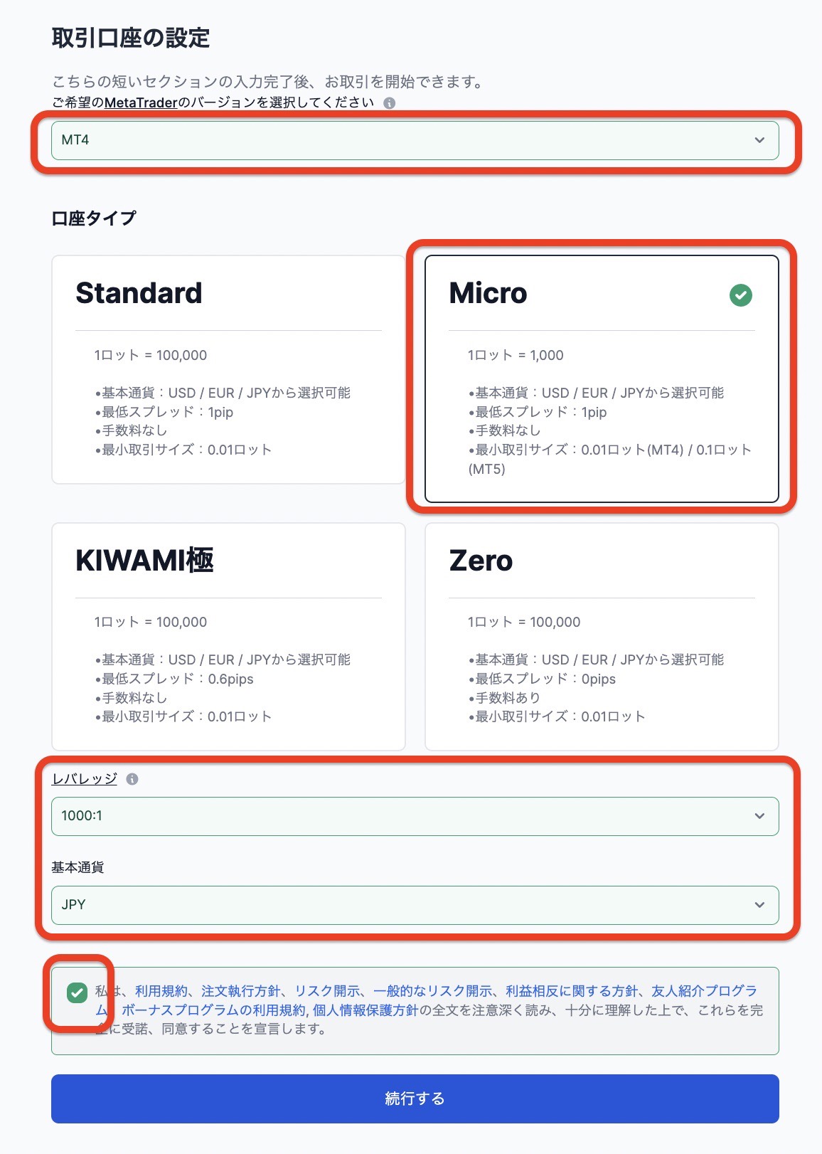 ➁ 口座タイプ:Micro(1ロット=1,000)