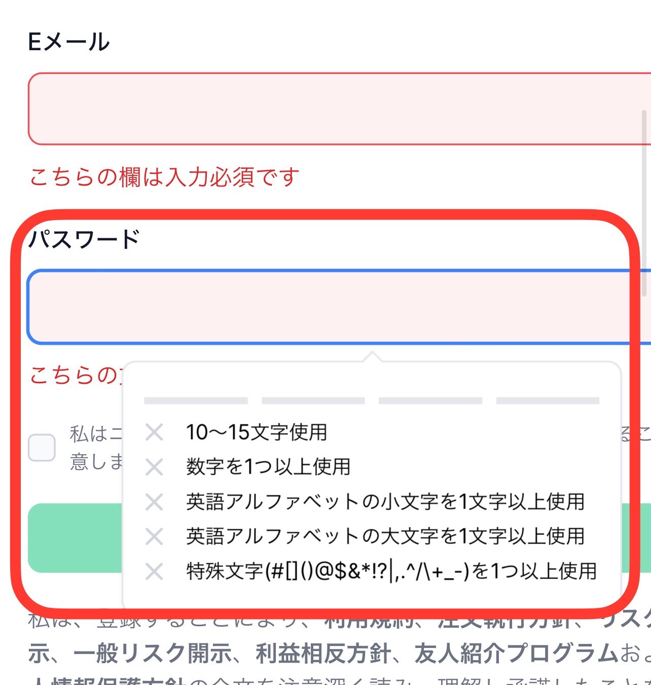 ⑥ 取引口座のパスワードを作成
