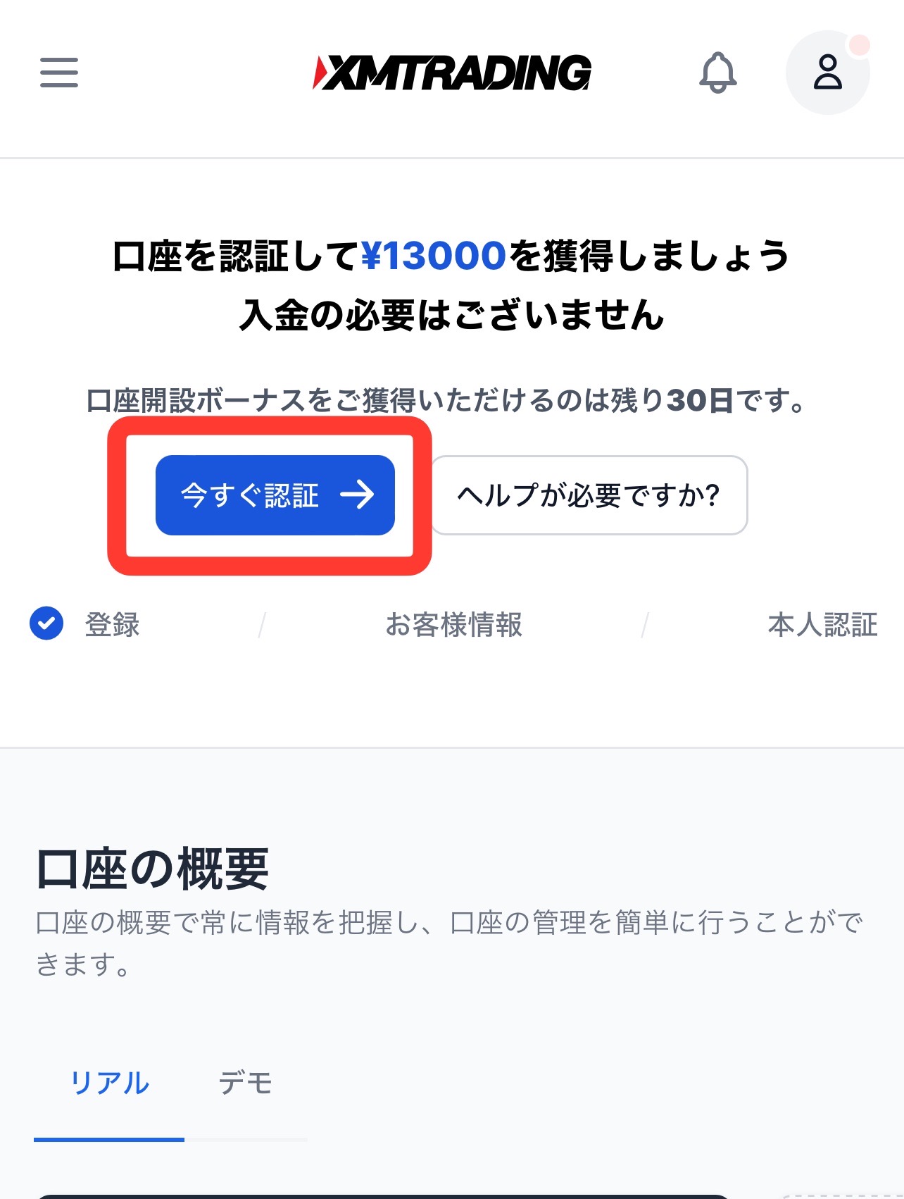 本人確認後(アカウント承認後)、